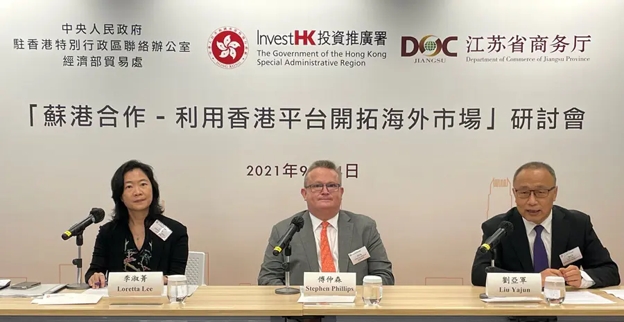 該研討會名為「蘇港合作—利用香港平台開拓海外市場」,是蘇港合作系列的第二個活動,由投資推廣署與中央人民政府駐香港特別行政區聯絡辦公室經濟部貿易處,以及江蘇省商務廳聯合舉辦,並由江蘇省國際投資促進中心、香港特別行政區政府駐上海經濟貿易辦事處、江蘇省駐香港經貿代表處和香港江蘇企業協會協辦。